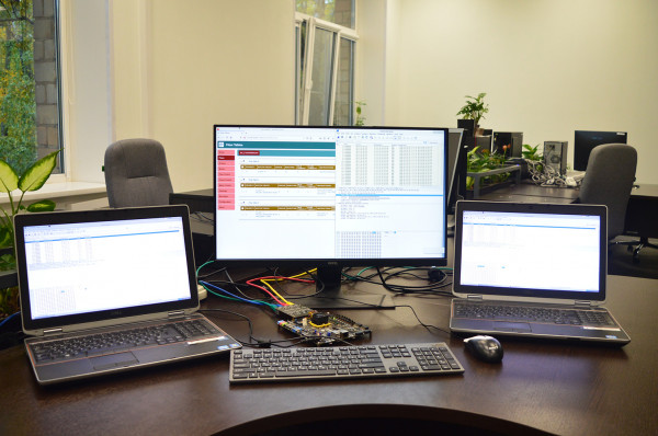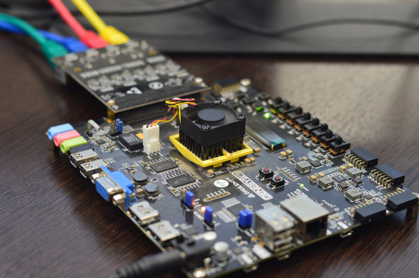 Наш первый прототип специализированного сетевого процессора, наконец, готов! Это масштабный (1:10 по скорости линейных портов и 4:48 по количеству линейных портов) прототип программируемого специализированного сетевого процессора для комплексной обработки трафика в сетях современных центров обработки данных. Прототип собран на ПЛИС Xilinx Kintex7, поддерживает скорость передачи данных 1 Гбит/с на порт на четырех линейных портах. Основная задача настоящего прототипа - продемонстрировать возможность создания в кремнии по технологическим нормам 28/16/12 нм специализированного сетевого процессора с производительностью терабитного уровня и уточнить его характеристики (размер кристалла, энергопотребление, цена при массовом производстве). Разработанный прототип соответсвует стандарту OpenFlow 1.3, за исключением недетерминированных по времени исполнения функций, наподобие разбора инкапсуляций в стандарте заголовка IPv6. Уже проведены первые показы прототипа потенциальным потребителям.
